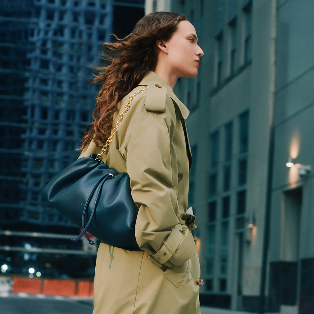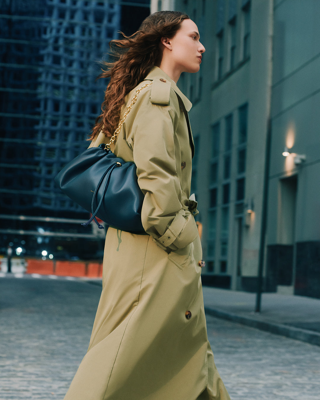 A total statement piece to dress up or down. Roomy enough for your essentials, with a striking ruched silhouette. Crafted from ultra-smooth Turkish lambskin leather.