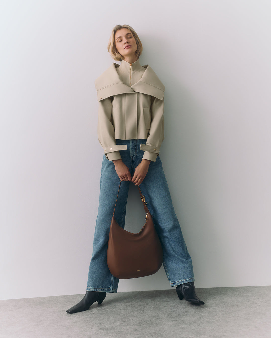 A large rendition of our bestselling silhouette to add understated elegance to your everyday outings, sculpted from buttery-soft smooth lambskin leather in a crescent shape.