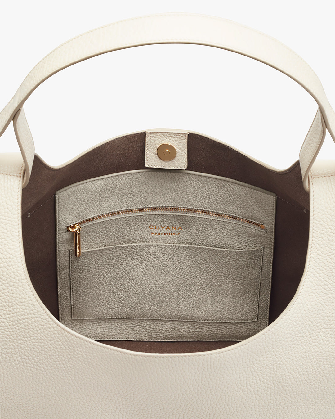 A modern and unique marriage of the classic shoulder bag and the quotidian shopping bag, with a soft structure, to elegantly accompany you through everyday activities.